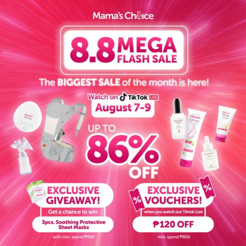 Don't miss out on our 8.8 TikTok LIVE! Score super big savings when you watch and checkout during our TikTok Live: 💖 EXCLUSIVE VOUCHERS! 💖 EXCLUSIVE FREEBIES AND GIVEAWAYS! 💖 EXCLUSIVE TIPS FROM OUR MAMA HOSTS! Follow Mama’s Choice on TikTok and hit the bell button to get notified whenever we’re live! See you there Mamas!