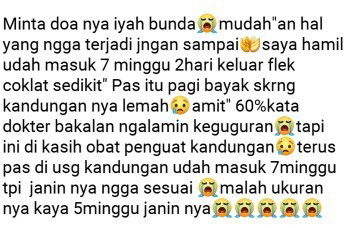 Bunda harus pny pikiran positif untuk perkembangan anaknya. Bedrest total dulu ya bun. Jangan banyak gerak atau kerja dl. Obat dr dokter wajib dikonsumsi, beli susu bumil, beli sari kurma, perbanyak minum air putih, makan jg harus krn itu penting. semoga janinnya ga knp2 ya bun