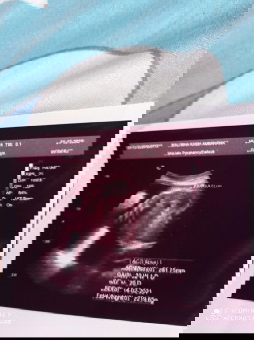 Lingkar perut (AC) : 281,75 GA ( usia kehamilan ) : 32 minggu 1 hari Edd ( hpl ) : 14- feb-21 Fetal weight : 2219 gram