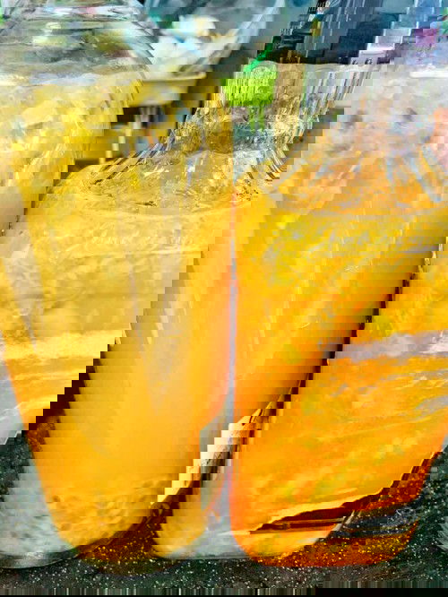 F2 1. passion fruit+ginger kombucha 2. Mango kombucha