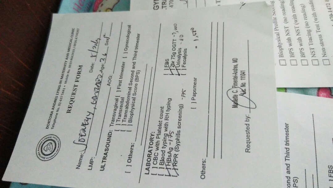 yan ang akin uulitin lht kc wl ako copy nung mga labtest kp nung mconfine aq s v.luna... pati hiv uulitin, s saturday sked ko ng congenital anomaly scan, dpt knina ay wl ung doctor