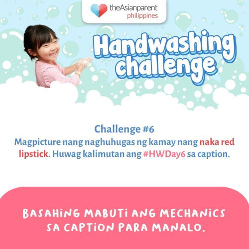 Manalo ng Php100 worth of Puregold GC! 1. Pumunta sa https://tap.red/pm3mr at i-click ang “Participate” kung hindi mo pa ito ginagawa. 2. Magpicture nang naghuhugas ng kamay nang naka red lipstick. Siguraduhing kita ang kissable lips sa picture! 3. I-post as comment sa post na ito. Huwag kalimutan ang #HWDay6. 4. Ang may pinakacreative na picture ang mananalo. 5. Submission of entries ends on 11:59pm tonight. I-aannounce ang winner for daily challenge #6 sa April 6, 2020.