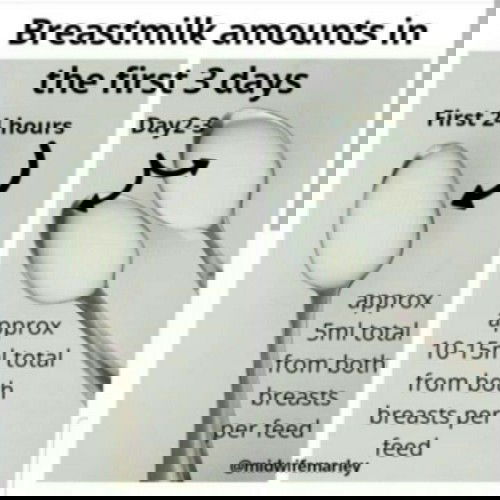 "I had my first shift back at work today since giving birth. As I work in the community visiting postpartum women, I was shocked at the number of women who didn't understand the mechanics of colostrum in the first few days. 3 women who were 2 days postpartum all said the same thing: "I gave a bottle as I have no milk, I can't see anything" It is a big issue that we as midwives need to focus on as so many women are giving up due to believing that they have no milk and worrying that they are starving their babies. We need to let women know that breastfeeding is not the same as bottle feeding and the amount a baby will take from a bottle does not equal the amount a baby will take from the breast. In the first 24 hours, your baby will feed frequently to encourage your full milk to come in at around day 3 or 4. This might be every hour, half hour or 2 hours - it is not predictable. Some babies literally only feed a few times in the first 24 hours. You will produce approximately 5 mls of colostrum per feed in total - a small amount in comparison to the large quantities you might see in a formula bottle. This is totally normal. On day 2 and 3, you will produce around 10- 15ml per feed thats just 2-3 teaspoons. Again totally normal. Your baby has a small stomach so will feed regularly and cry a lot to encourage the milk to come in. As long as there is 1/2 wet nappies on day 1 and 2/3 on days 2 &3 there should be no cause for concern. Here are some facts: It is normal for babies to cry often and root around a lot in the early days. You will not necessarily notice any milk dribbling out of baby's mouth when they feed. A baby will guzzle anything you put in their mouth. Just because a 2 day old baby quickly drinks 30mls of formula does not mean you were starving them with small amounts of colostrum. Feeding from a bottle is easy but often babies will drink too much and vomit some up. Once you get through the first few days and your milk comes in, it does become easier as babies become fuller on each feed. A dehyrated baby will not pee often, will have a sunken soft spot on their head and will look generally unwell." Via @midwifemarley on IG and The Birth Coach on FB !