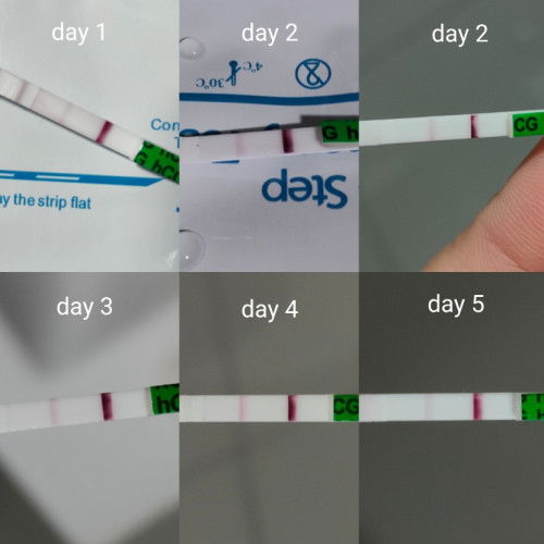 I tested positive one day after my missed period. But the lines are inconsistent and today it is slightly fainter than the day before. I am about 6 weeks in (as per app). Is it normal to see faint lines everyday after my missed period. In the pic, the day is referring to from my first day of test till today. Also, when is the best time to engage a obgyn? This is my first pregnancy. #firsttimemom #advicepls #Positive #faintline #ttc #singapore