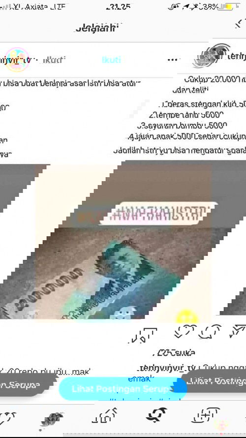 Đọc thêmitu namanya suami Gilak gak tau diri. ngawini anak org betul2 d bikin susah yaa. aku emang kadang belanja 20 rbu per hari Bun. tapi... cuman lauk sama sayurnya aja. beras, bawang cabe, segala macam bumbu, minyak makan gula garam dll ( bahan pokok) sudah terpenuhi untuk sebulan. jd 20 rbu itu hanya untuk ikan dan sayurnya doang