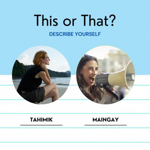 In general maingay ako. Tahimik ako pag gutom or pag nasa office. Pag nasa bahay maingay 😅