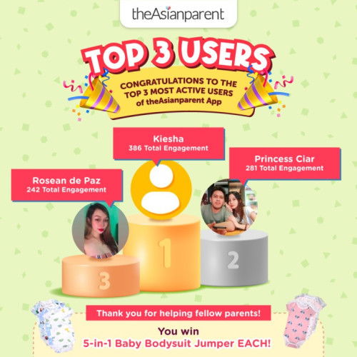 This time, we are awarding the users na may pinakamaraming comments sa mga posts and questions from our fellow parents sa app! Kaya may prize ang mga TOP 3 MOST HELPFUL USERS on a bi-weekly basis! 📱CONNECT MORE, COMMENT ON MORE QUESTIONS & WIN NEXT TIME! Next period will be on March 4-8, 2024!🏆 Top 1 - Keisha Top 2 - Princess Ciar Top 3 - Rosean de Paz Our Mama's Choice brand representative will contact you via email! PRIZES from Mama's Choice: 5-in-1 Baby Jumpsuit Kung gusto makasali next time, comment lang ng "HELPFUL DIN AKO!"