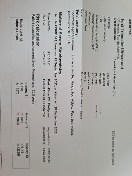 Week 13 now, my FTS result is low risk, but I would like to consult the doctor on the need for a harmony test as I don't understand the report other than knowing its low risk and not sure if I should go for harmony test as the accuracy is higher but my next gynae check up is on week 15. Is it too late to do a harmony test after week 15? Is there a max limit ? My result as per attached.
