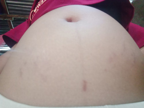 อยากรู้ว่าขีดเล็กๆตรงกลางท้องคือไรคะยาวขึ้นทีละนิดแล้วคนทักว่าท้องเล็กพี่ๆว่าท้องเล็กไหมคะ5เดือนแล้วท้องแตกไปหมด