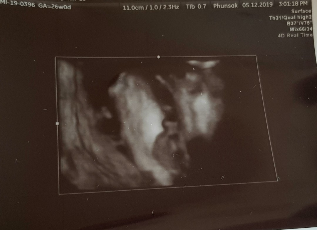 พอดีไปซาวดูเพศน้องหันหลังอยู่ตรงนี้คือขาน้องน้องหันทางก้นมาให้หมอบอกว่าตรงลูกศรบวกคือจิ๋มช่วยดูทีค่ะ