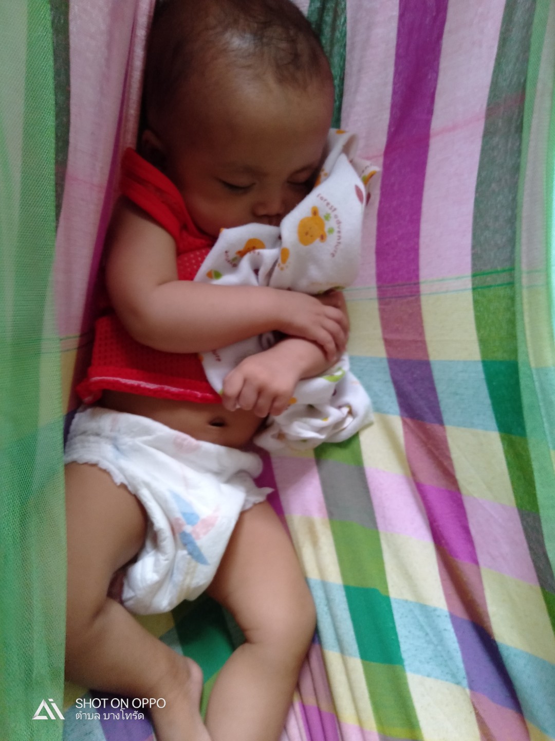 ตอนอายุเท่ากันนี้ กลางวันก็ยังนอนเปลอยู่ค่ะ
