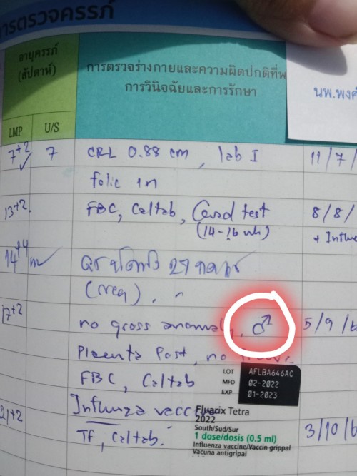 บ้านนี้ก็ได้ผู้ชายจ้า หมอทั้งเขียนใส่สมุดทั้งใบซาวด์ เจอจู๋น้อยตอน17w+2d แต่แม่รอหมอคอนเฟิร์มตอน21wอีกที สรุปชาย100%😂 คนแรกชาย8ขวบ คนที่สองหญิง 1ขวบ11เดือน คนที่3ชายมาอีก อิแม่เพลียจริงๆ