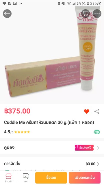 บ้านนี้ใช้ครีมตัวนี้ทาทาแล้วไม่ต้องล้างออกคะลูกสามารถดูดได้เลยทาบ่อยๆคะแม่ราคาแอบแรงนิดนึงคะแม่